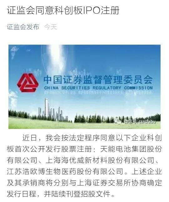 克日,,,,,,,我会按法定程序赞成以下企业科创板首次果真刊行股票注册:腾博官网诚信为本,专业服务、上海海优威新质料股份有限公司、江苏浩欧博生物医药股份有限公司。。。。。。上述企业及其承销商将划分与上海证券生意所协商确定刊行日程,,,,,,,并陆续刊登招股文件。。。。。。